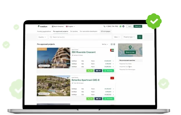 Loan offers from local lenders or through Kredium's cross-border real estate financing platform (subject to availability)